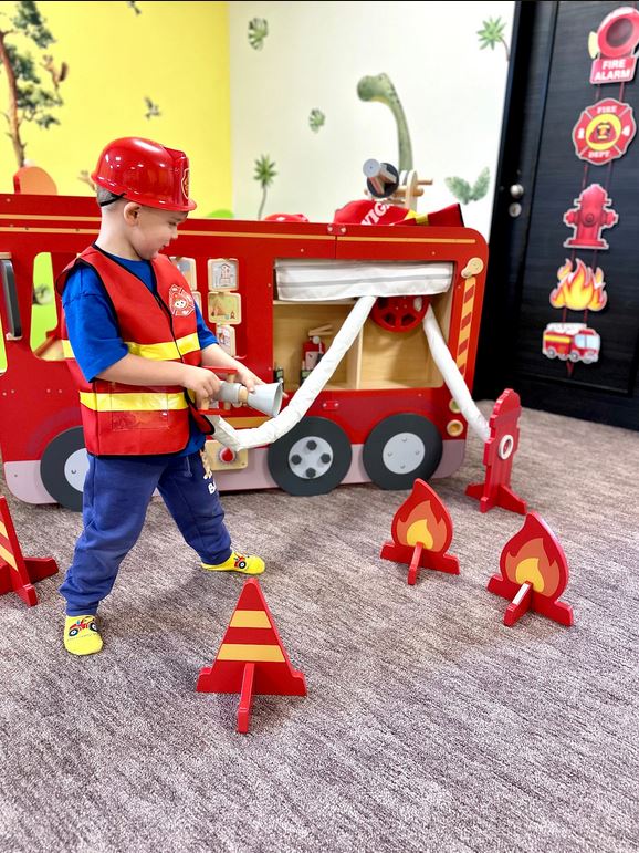 Na ploše 300 m² jsme vytvořili dvě herničky a útulnou kavárnu. Čeká na vás obří Montessori hasičské auto, ambulance, dětský obchůdek, kavárna, horská dráha, odrážedla a herna plná objevování.